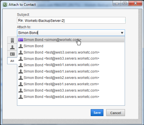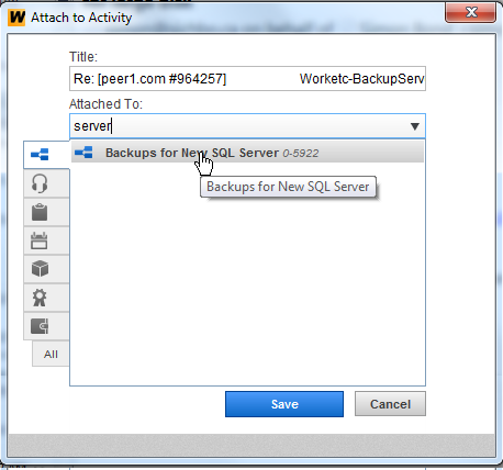 The most obvious task is to simply attach an email to an existing WORKetc Activity. In the example below we've attached an email about our new backup server, to the project we used to scope out server selection and deployment.