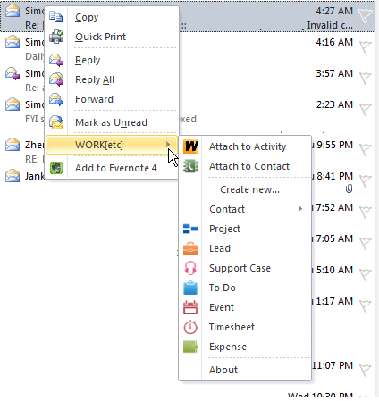 Simply right-click on any email to pull up the WORK[etc] menu.