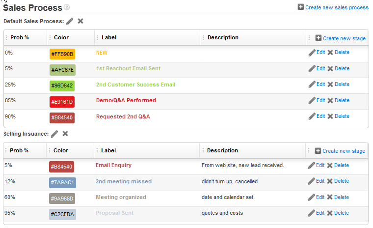 This is what the new Sales Process feature looks like: