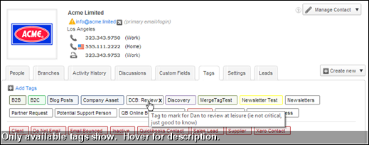 -  Instead of having to view all tags on an activity, you can now use the settings screens to hide certain tags for certain activities.  For example - only show the tag called "late payer" on the finance pages.  This also solves a problem for a handful of customers that have 200+ tags in operation.