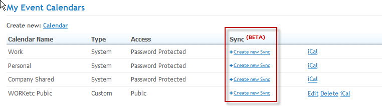 To access this, go to Settings -> Event Calendar Settings, select the calendar you want to sync and then enter your details: