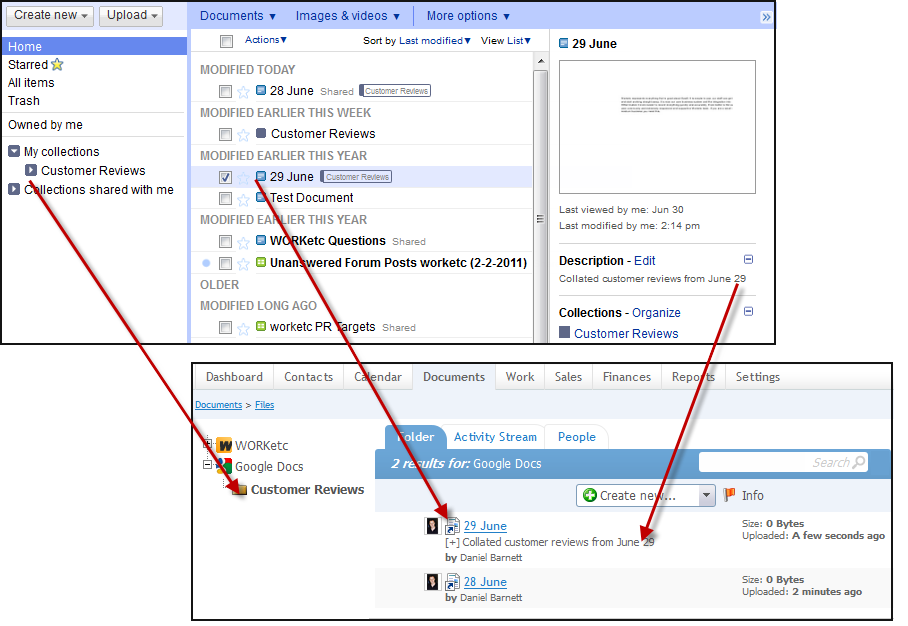 So in summary, Google Docs handles the creation of documents and WORKetc links documents to context such as customers, projects, sales leads and more.