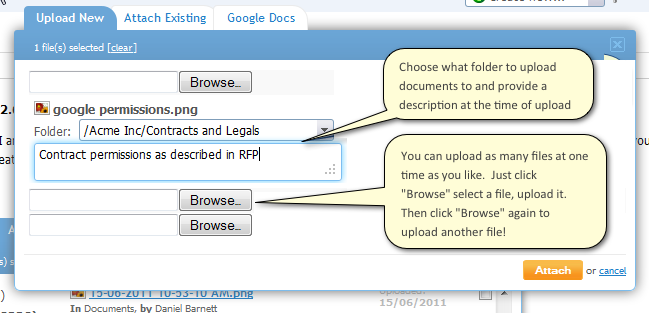 You can now also browse files that you have already uploaded to WORKetc, allowing you to attach the same file to multiple activities within WORKetc:
